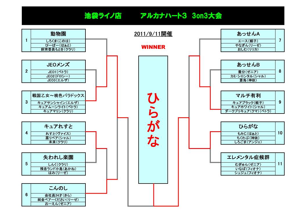 9/11に行なわれたアルカナハート3 3on3大会の結果です。