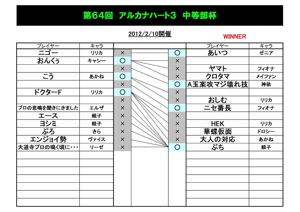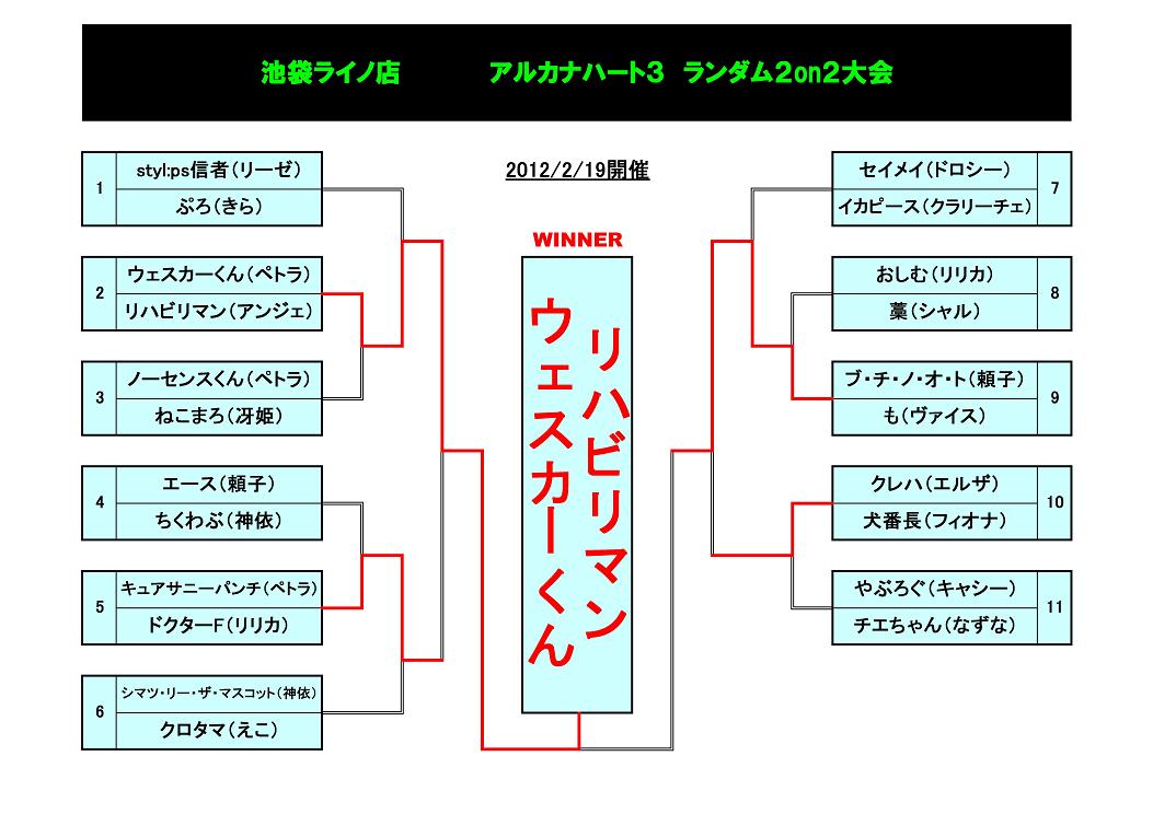 2/18に行なわれた、アクアパッツァ定額フリープレイ後大会の結果です。