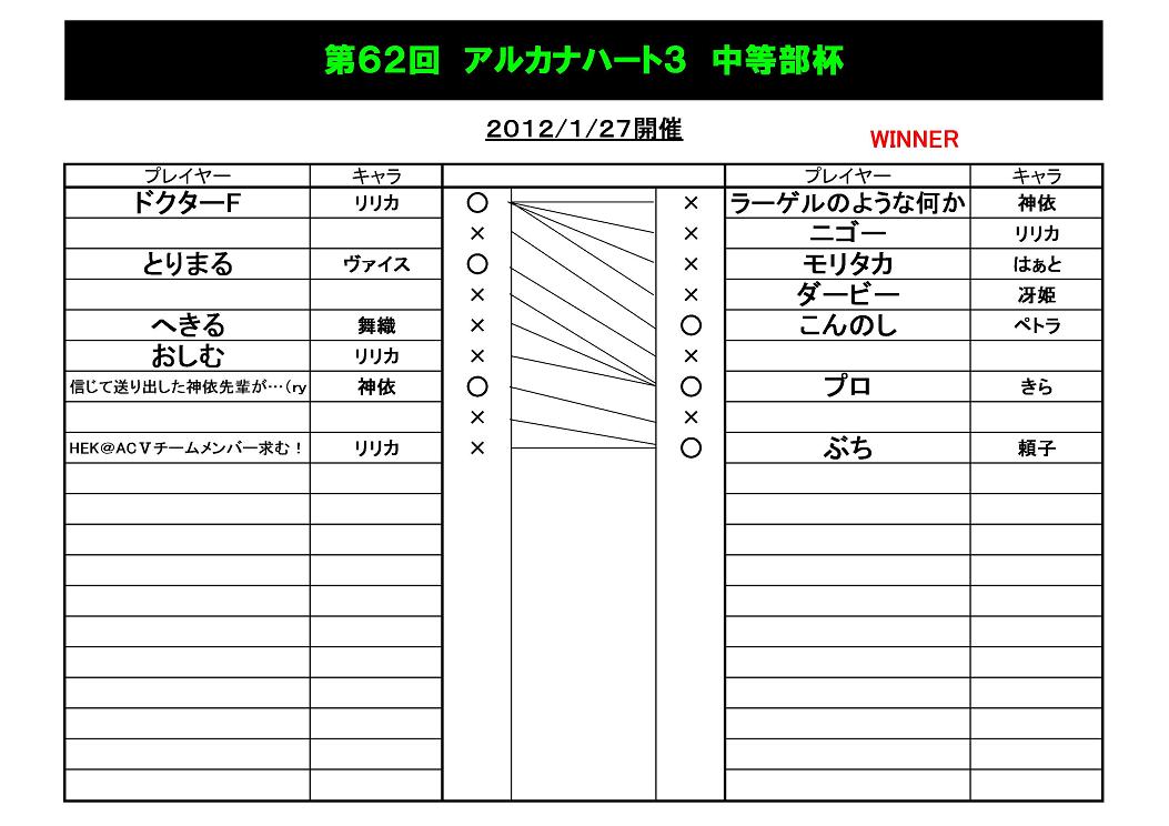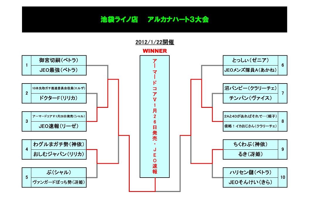 1/21に行なわれた、アクアパッツァ定額フリープレイ後大会の結果です。