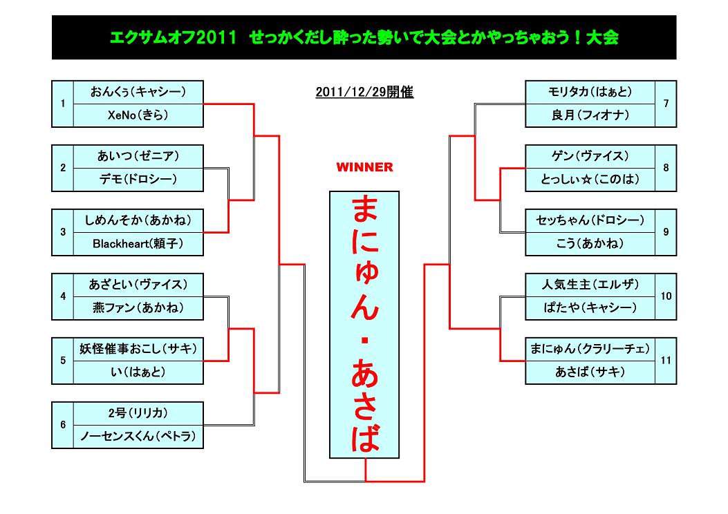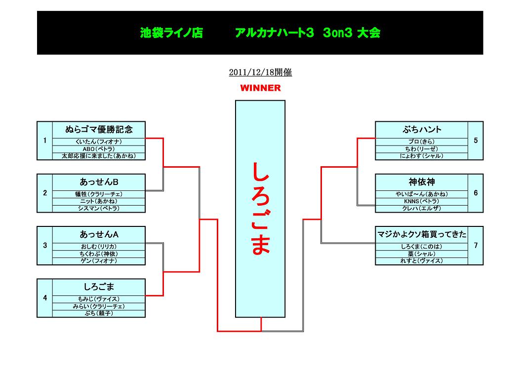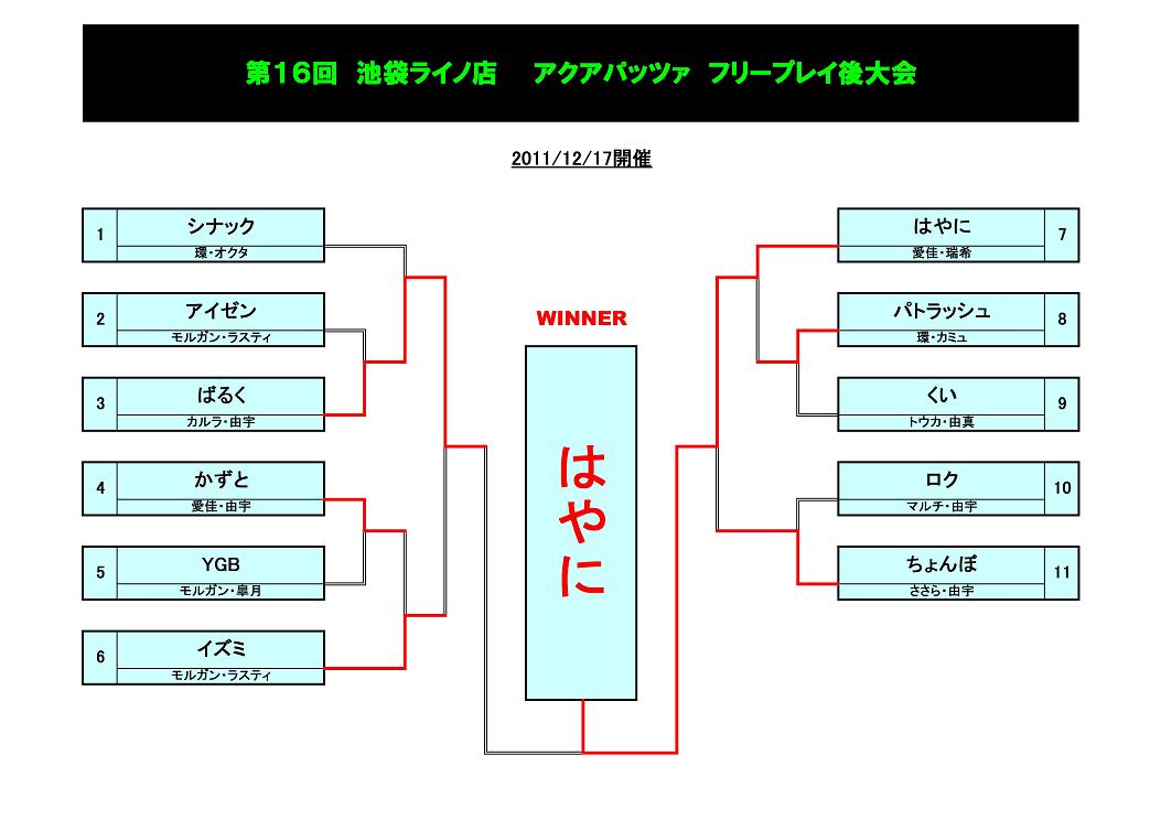 12/17に行なわれた、アクアパッツァ定額フリープレイ後大会の結果です。