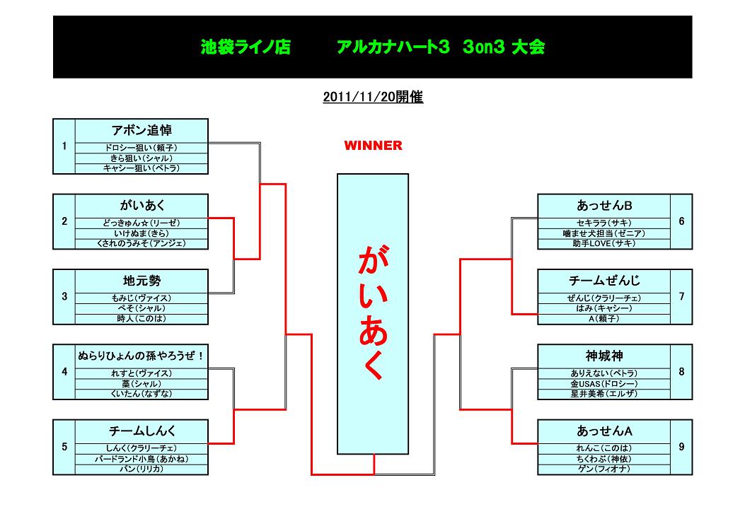 11/26に行なわれた、アクアパッツァ定額フリープレイ後大会の結果です。