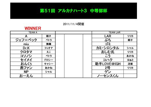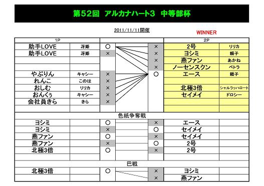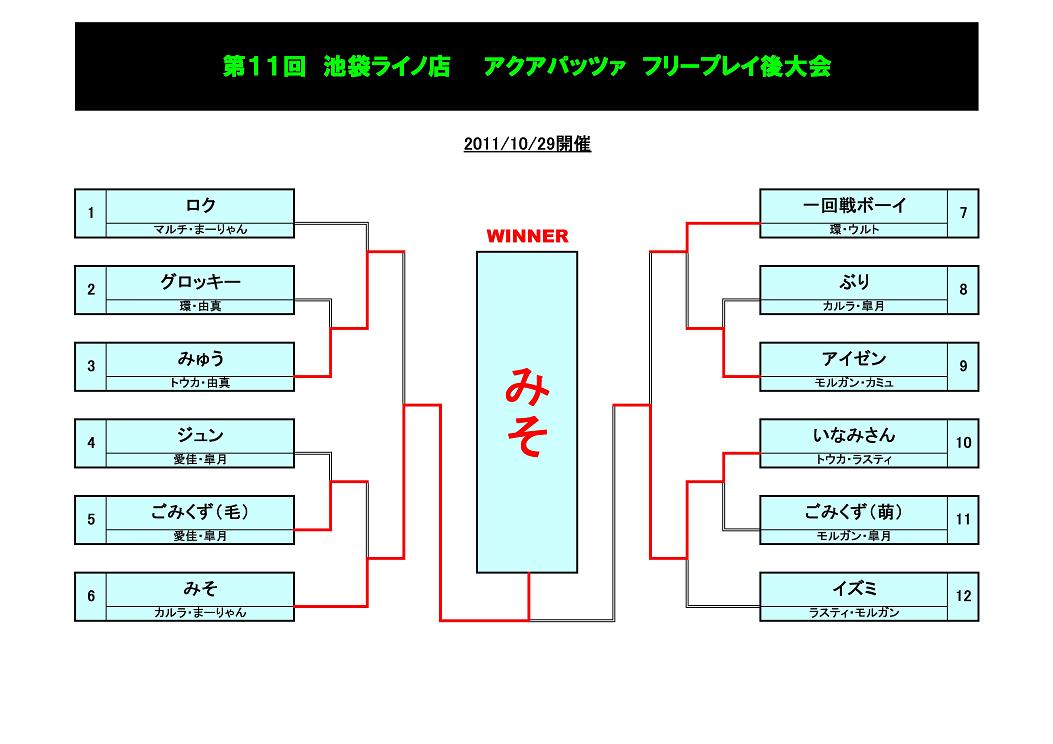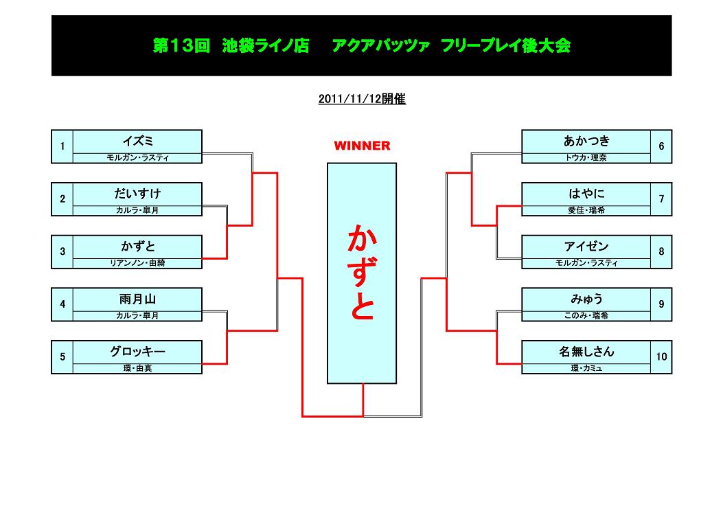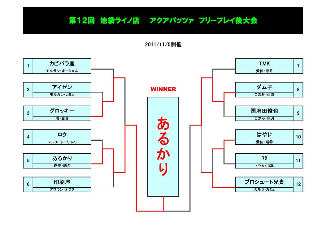 11/12に行なわれた、アクアパッツァ定額フリープレイ後大会の結果です。