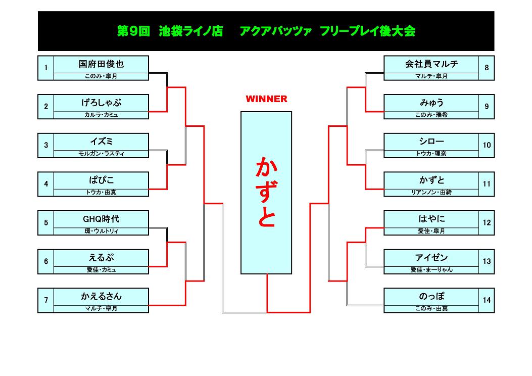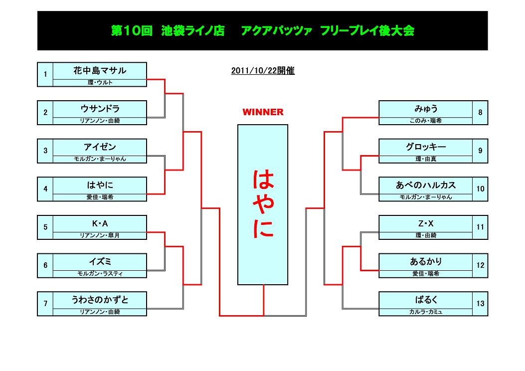 10/22に行なわれた、アクアパッツァ定額フリープレイの結果です。