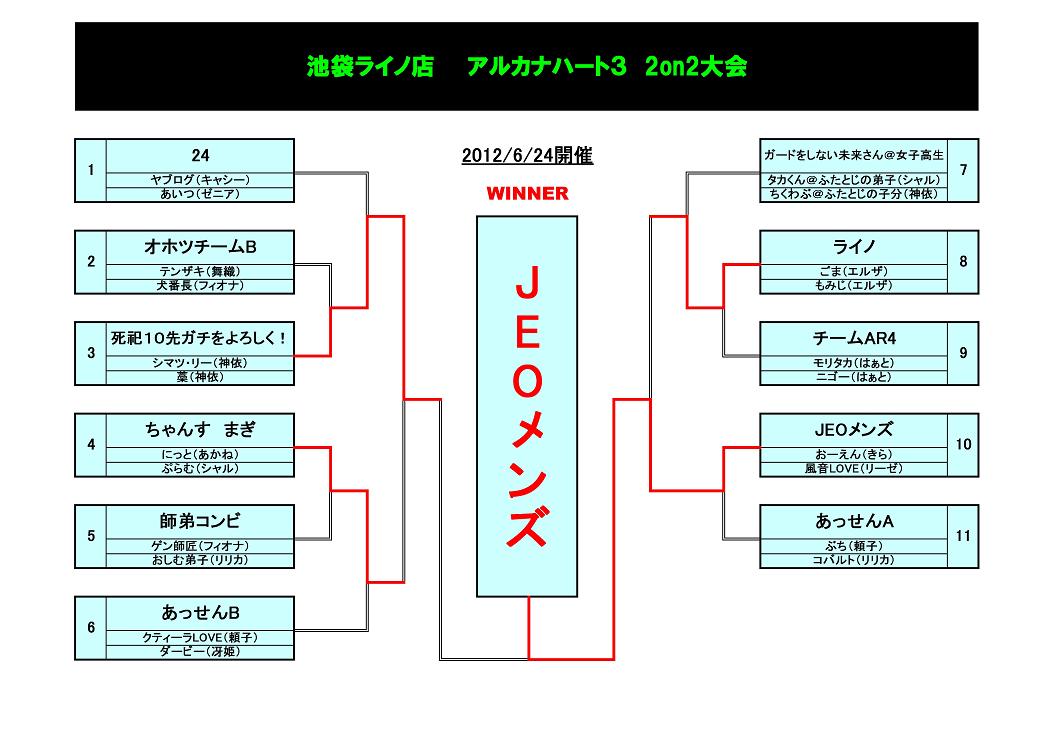 6/24に行われたアルカナハート3 2on2大会の結果です。