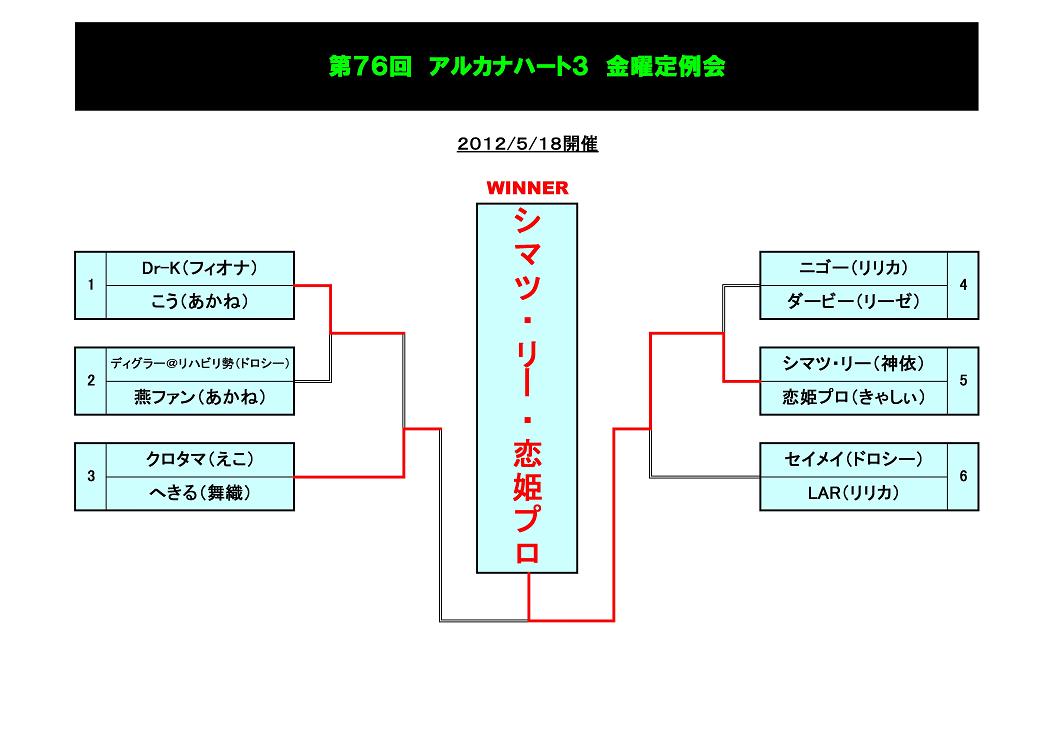 参加者は8名でした。 5月のP4U木曜大会は ・ビギナーズアリーナが31日 ・スロースターターズアリーナが24日 の予定です。 詳しくはこちらをご覧下さい。 皆様のご参加をお待ちしております |