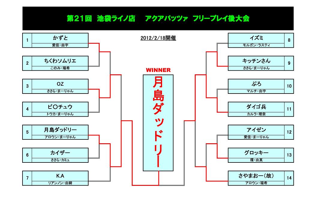 2/18に行なわれた、アクアパッツァ定額フリープレイ後大会の結果です。