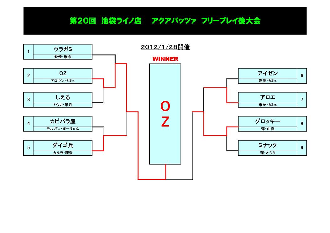 1/28に行なわれた、アクアパッツァ定額フリープレイ後大会の結果です。
