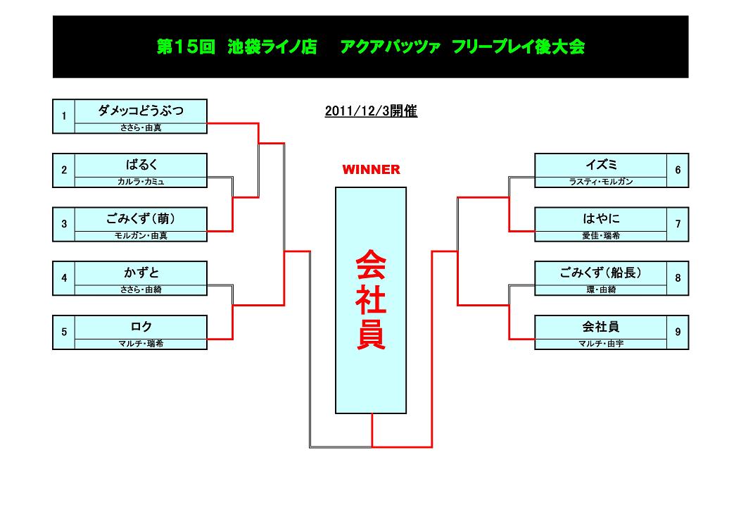 12/3に行なわれた、アクアパッツァ定額フリープレイ後大会の結果です。