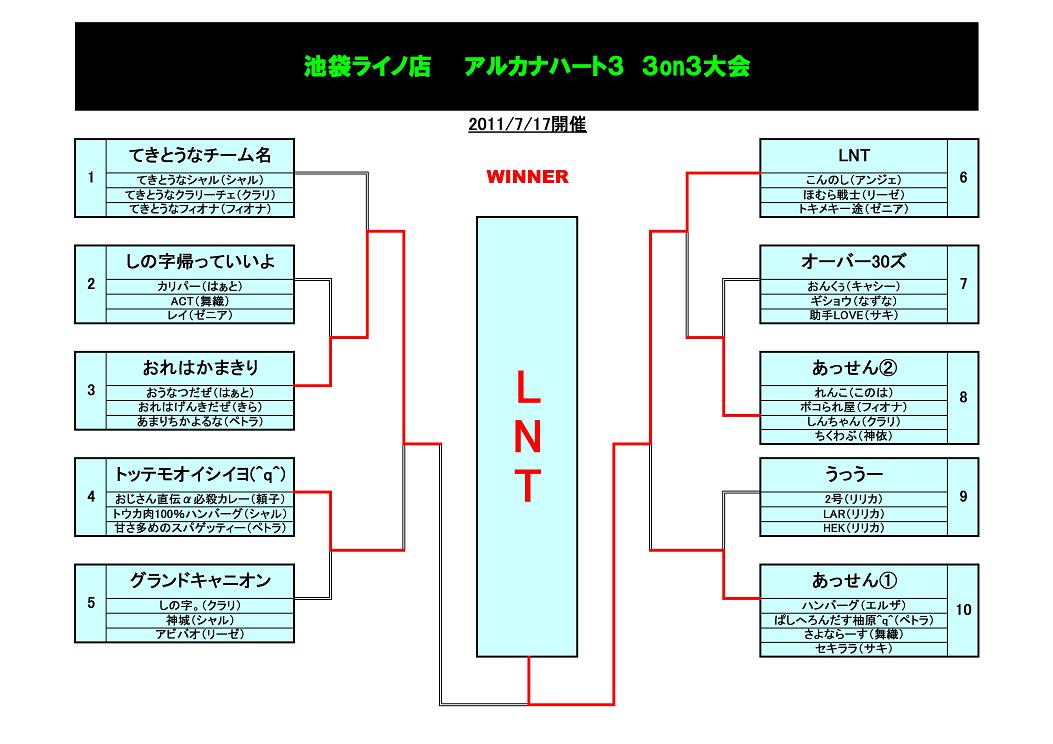 7/17に行なわれたアルカナハート3 3on3大会の結果です。