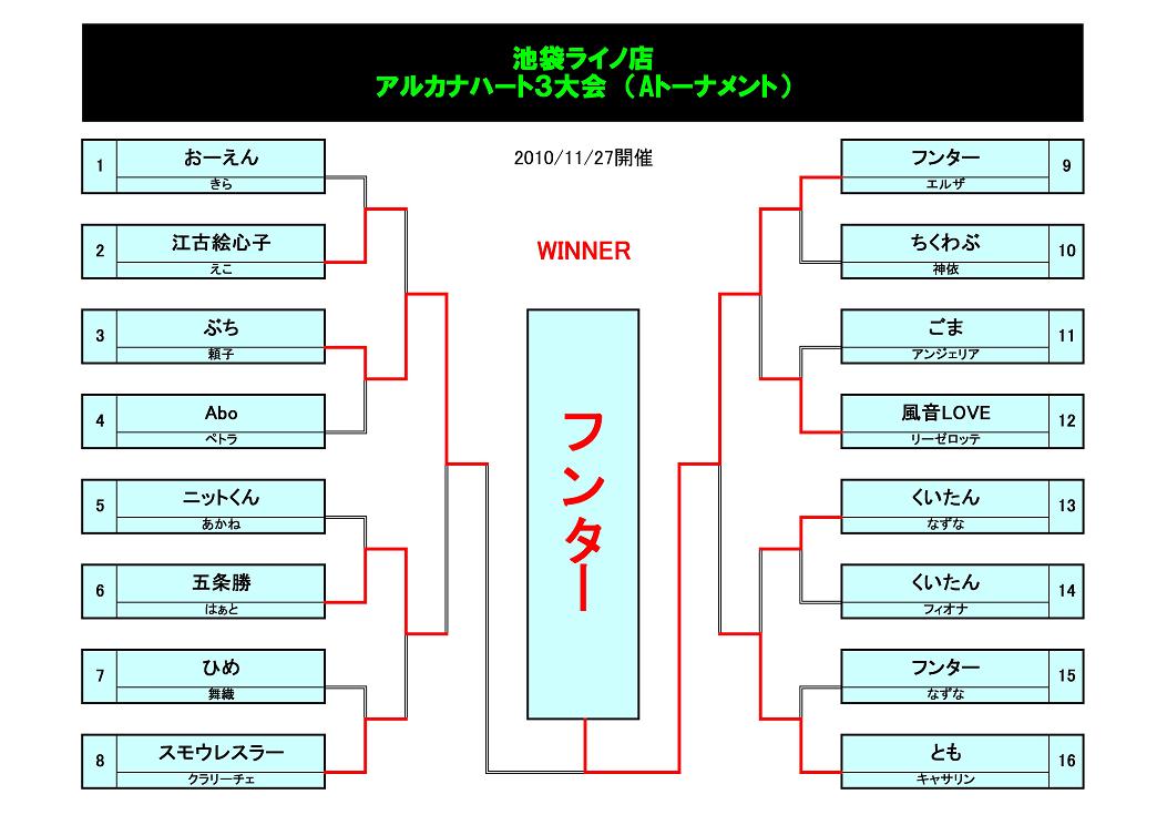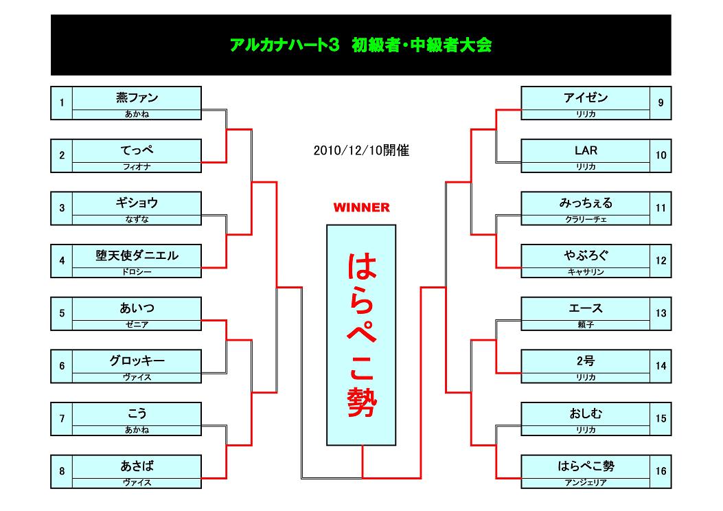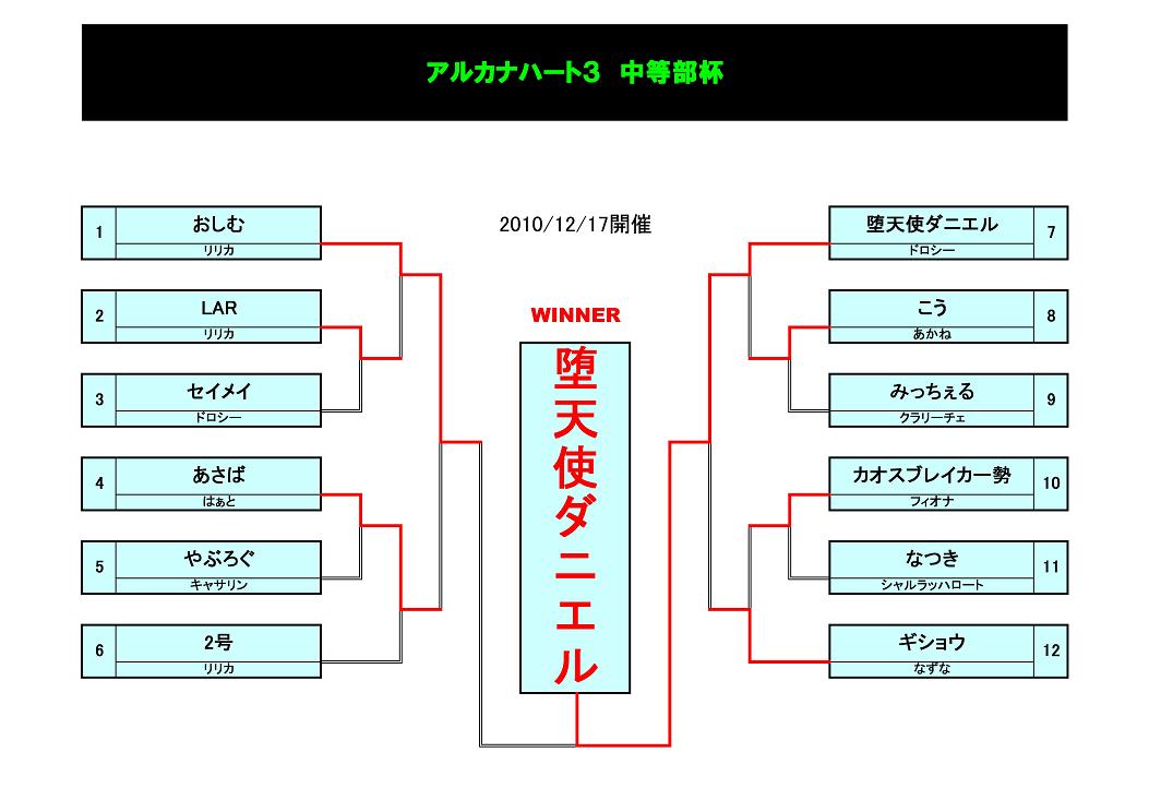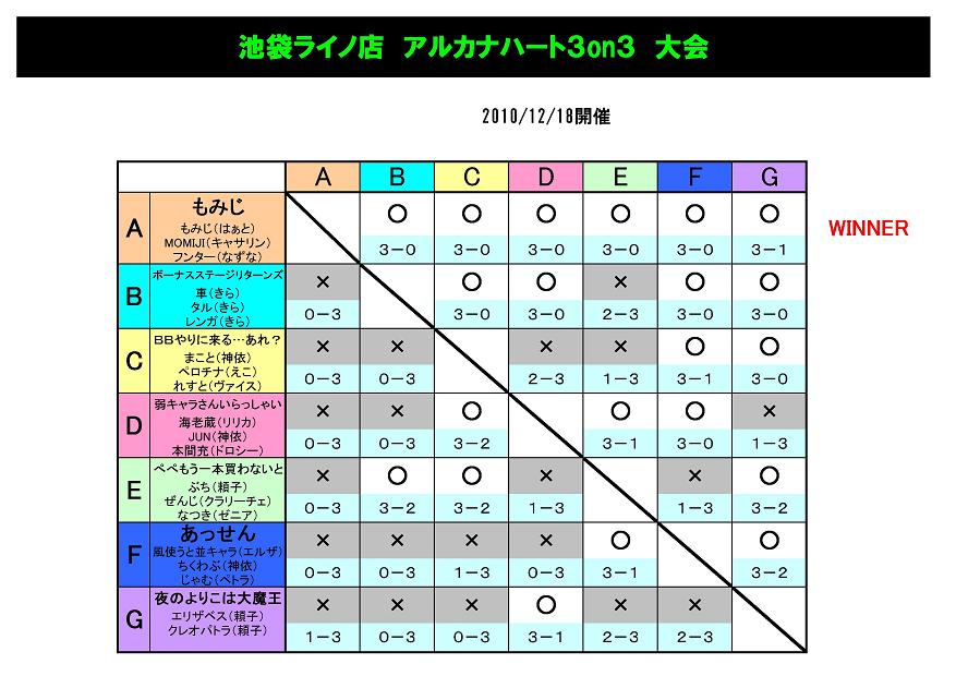 12/18に行われたアルカナハート3 3on3大会の結果です。
