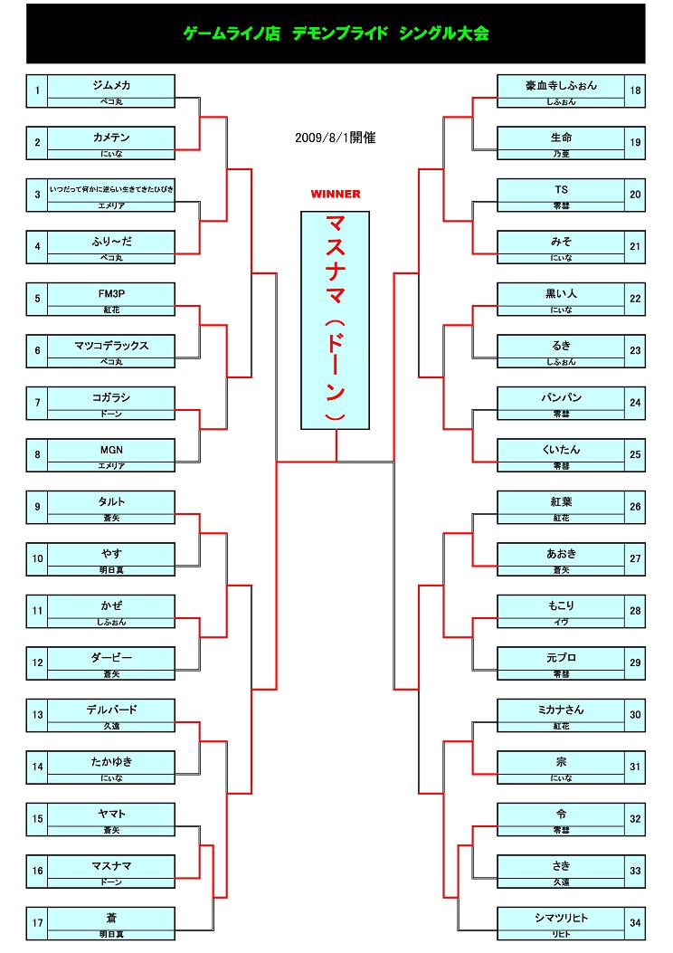 × [PR]上記の広告は3ヶ月以上新規記事投稿のないブログに表示されています。新しい記事を書く事で広告が消えます。 参加者は34名でした。 優勝 マスナマ(ドーン) 準優勝 みそ(にぃな) 沢山の方の参加ありがとうございます! 8/2より対人戦本数の変更を行います。 2台あるうちの片方を2本先取、もう1台を3本先取に変更しました。 こちらの対戦本数は、お申し付け頂ければその場で変更もします。但し対人戦のみです。 よろしくお願いいたします。 また、8/9にはお客様主催の対戦交流会も行われます。 ぜひこちらもご参加ください! 対戦交流会はこちら |