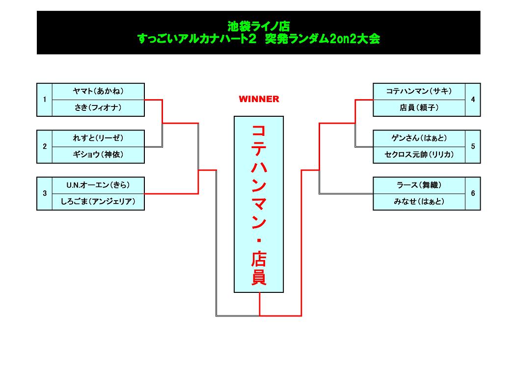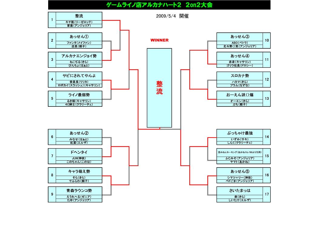 5月4日に行われた「」すっごいアルカナハート2.6」2on2大会の結果です。