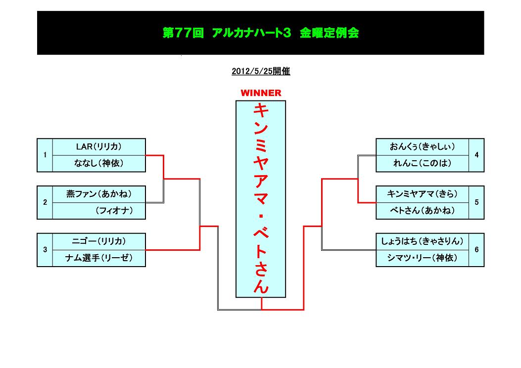参加者は8名でした。 5月のP4U木曜大会は ・ビギナーズアリーナが31日 ・スロースターターズアリーナが24日 の予定です。 詳しくはこちらをご覧下さい。 皆様のご参加をお待ちしております |